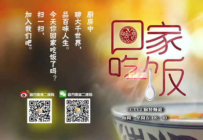 每周一到周五,《回家吃饭》在CCTV2黄金时段18点30分播出,每周播出五期节目。周一至周三为日常版节目,周四至周五为特别版节目,周六重复播出特别版节目。